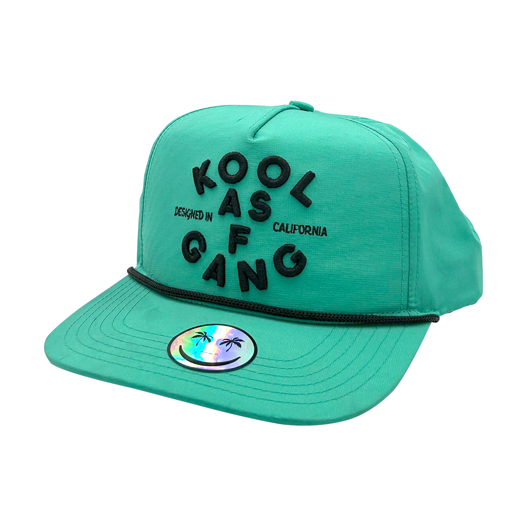 Stand out with the Kool As F Gang Green Hat. This vibrant green cap features bold black embroidery with "Kool As F Gang" text, designed in California. The black rope detail adds a stylish touch, making it a perfect accessory for those who love a bold and playful look. Ideal for casual outings and making a statement.